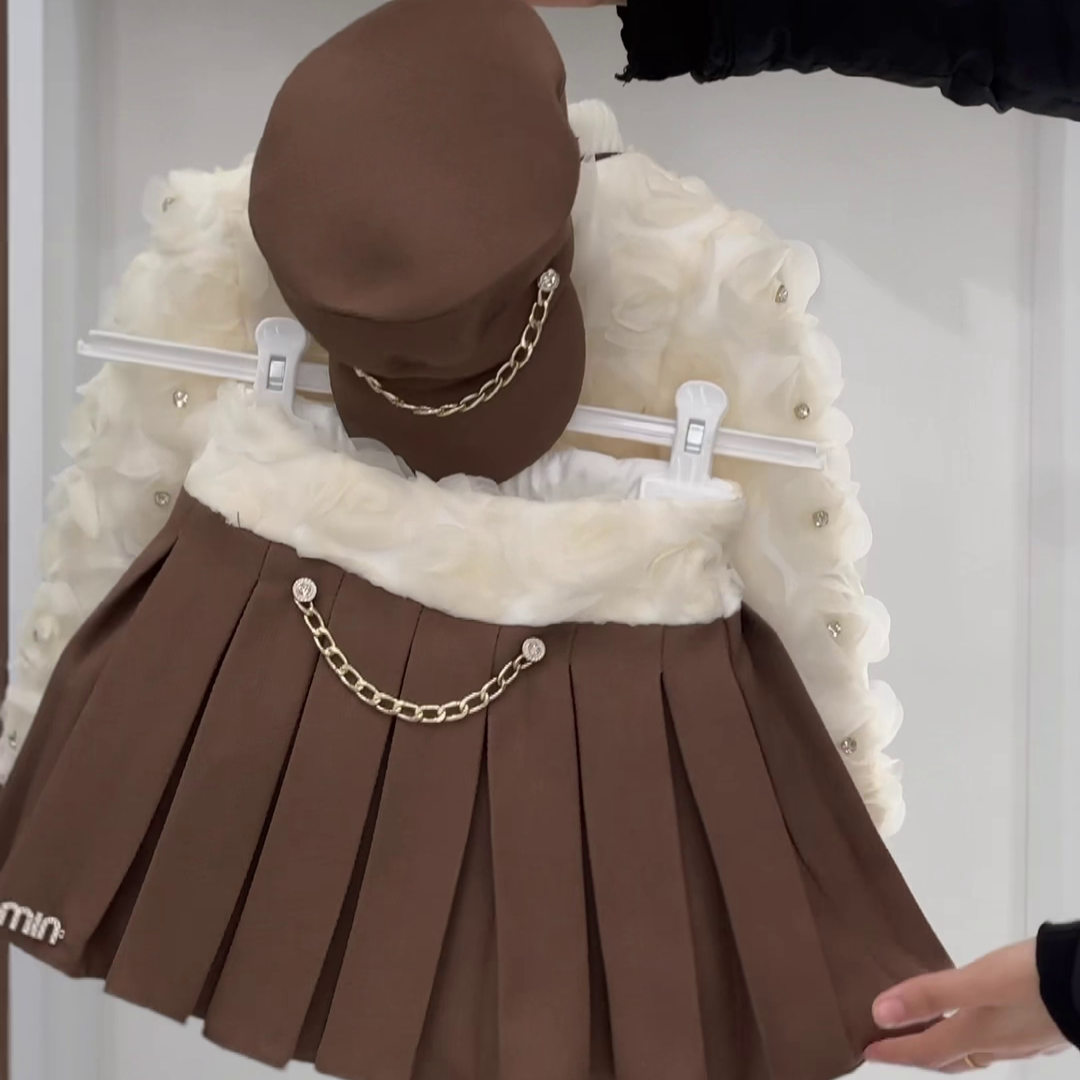 مكوّن من جاكيت راقي مزين بورود ناعمة + تنورة أنيقة تعطي إطلالة أميرية 👗